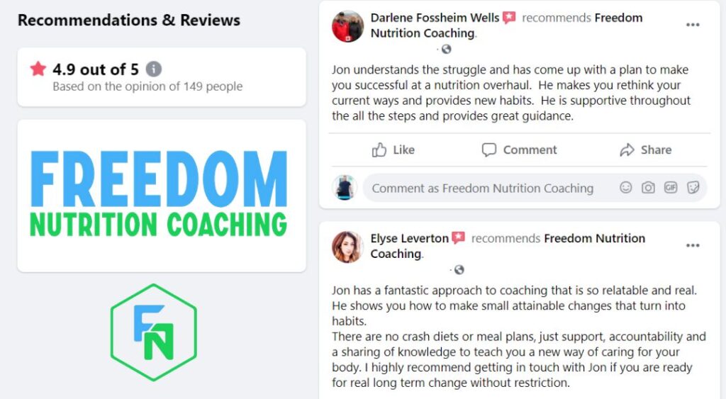 “Coach Jon has taken the time to genuinely listen to my journey. I have never felt any judgement, only support. I realized striving for perfection was just setting myself up to fail. Now I am happy and healthy. I understand that this is a life long journey and I trust Coach Jon to support me.“